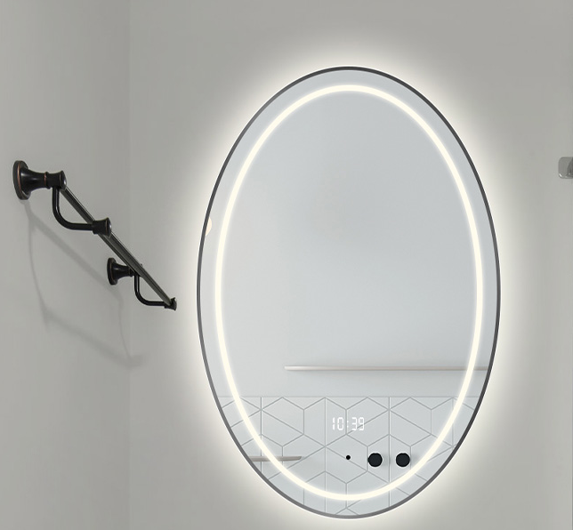 方形智能浴室防雾魔镜设计除了提升家的颜值,此外,浴室镜具有电子防雾功能,内置镜灯开关,防潮安全,防雾浴室镜还内置了智能系统,用户在早晨洗漱时就能获得自己需要的天气、湿度等信息,让用户获得更好的使用体验